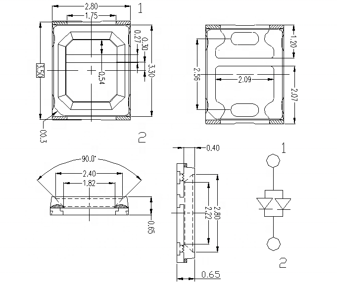 | SMD type | Color | WL | LM | VF | Angle | RA | Packing size |